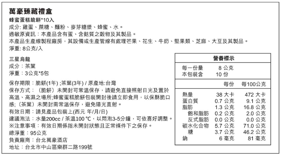 ▲此商品為蜂蜜蛋糕脆餅10入+台灣三星烏龍茶1罐
